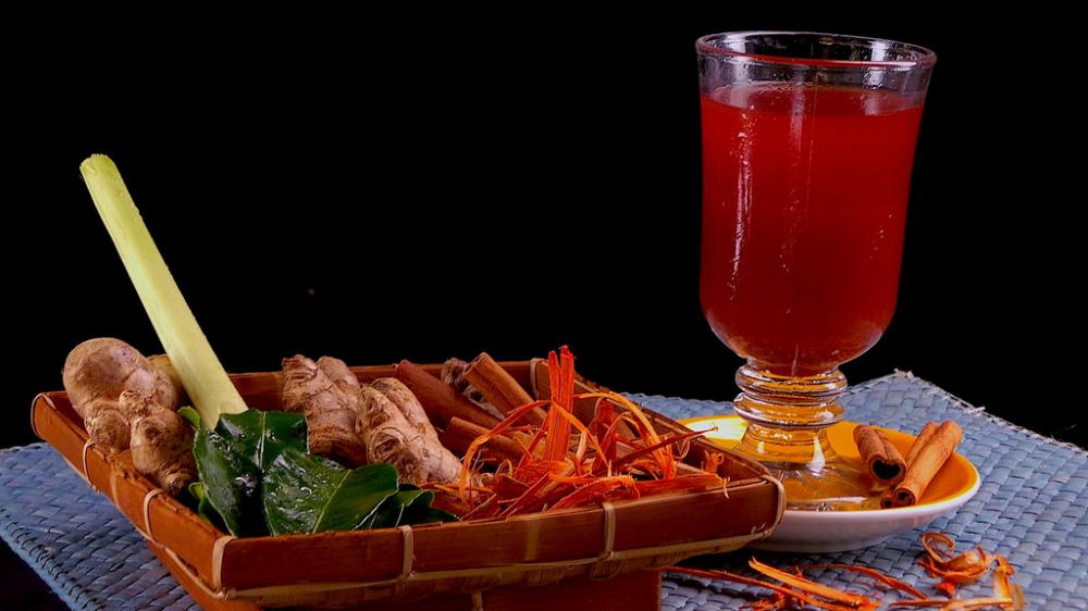 Warna merah pada bir pletok berasal dari kayu secang.